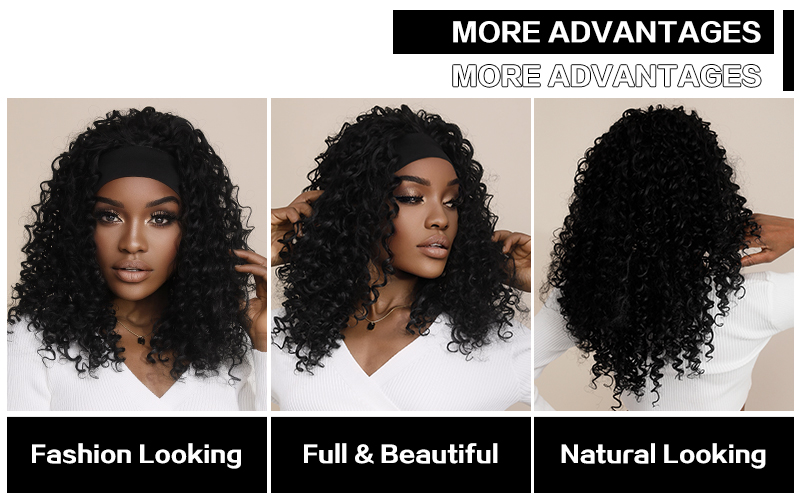 - 【Headband Wig Material】 : Deep Wave Headband Wig is Made of High-Quality Heat Resistant Synthetic Fiber, Soft to the Touch, as Natural as Human Hair, 180% Density, Tangle-Free, and Minimum Shedding.
