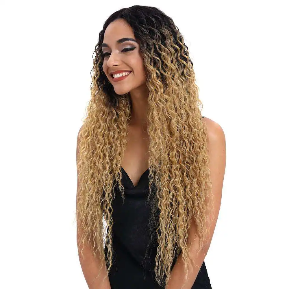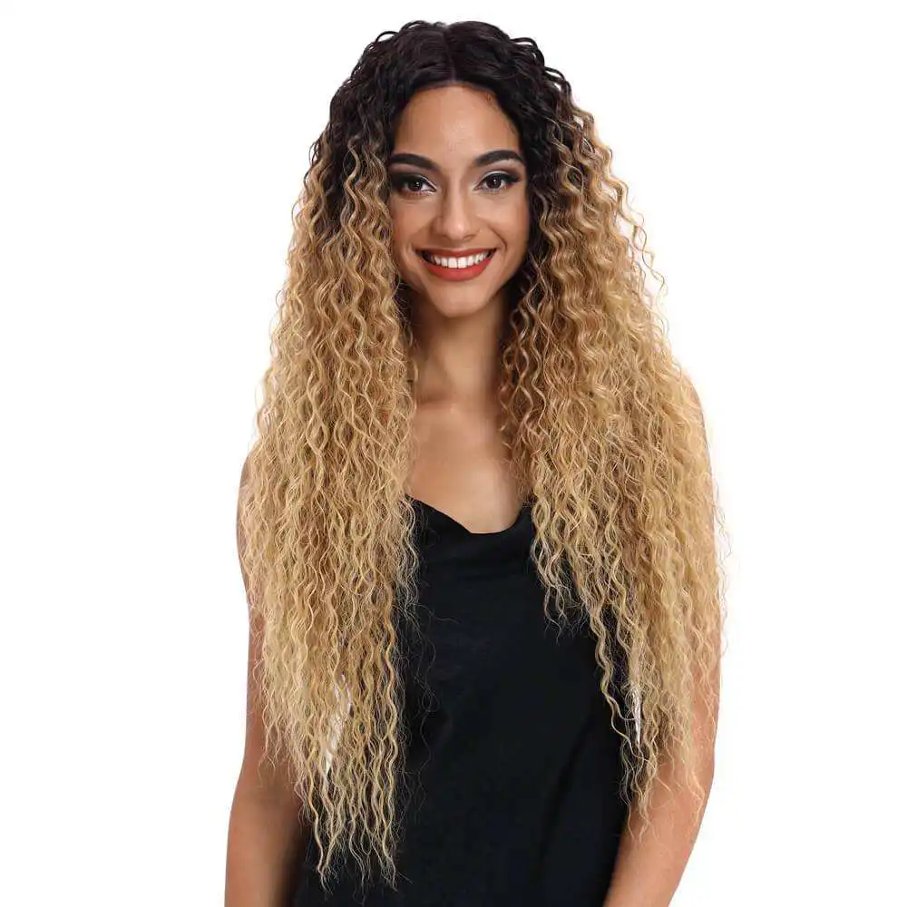 Premium 30-inch heat-resistant synthetic wig with kinky curly blonde ombre style. Features lace front for natural look. Perfect for Black women. Hot Sale High Quality.Shop now!